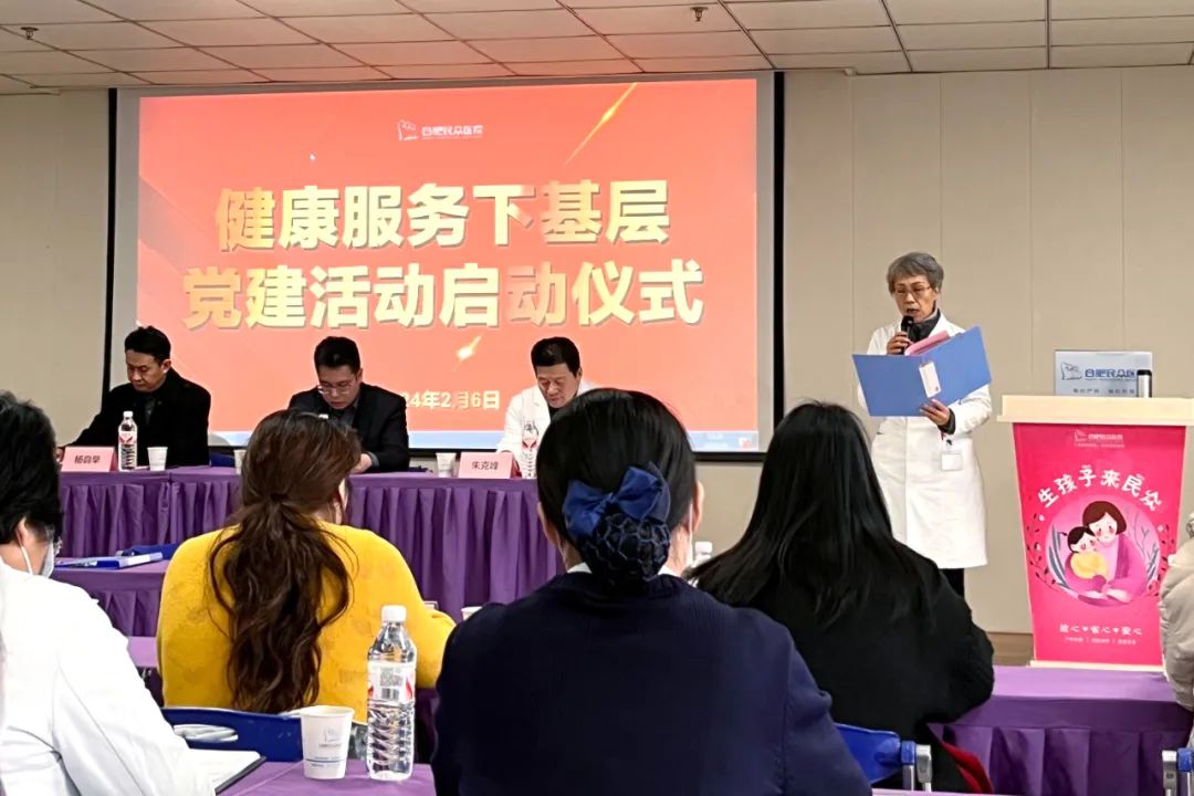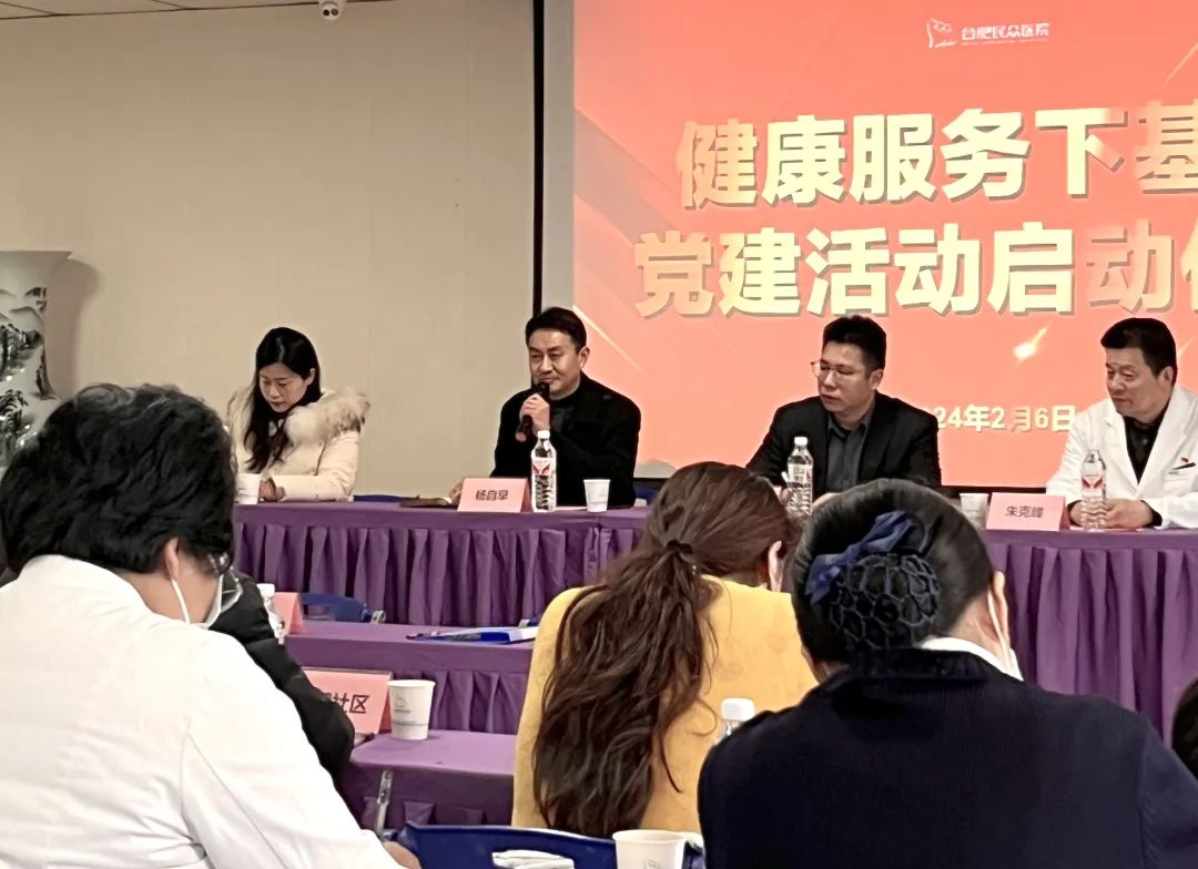 会议由井岗镇副镇长孙慧主持。首先,由我院业务院长谢穗对此次启动仪式进行了发言,她说:“我院作为蜀山区的医疗卫生服务机构,我们始终将提升服务质量、保障人民健康作为医院的首要任务。此次‘健康服务下基层党建活动’启动后,我们将以医院为主体,成立八到十个医疗服务小组,以党员及入党积极分子为骨干,每组三到四位医护人员,为辖区有医疗需求的居民提供上门健康服务”。我院内科副主任医师施德重在本次启动仪式上作为党员代表表态:履行党员先锋带头作用,切实为辖区居民做好医疗服务工作。
