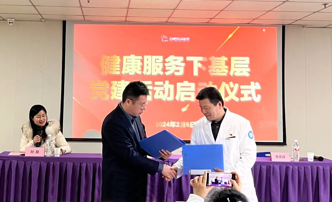 会上,井岗镇党委委员刘浩和我院院长朱克峰分别代表井岗镇党委、合肥民众医院党支部共同签署了“健康服务下基层党建活动”启动仪式合作备忘录。我院党支部将在区卫健委、井岗镇党委的共同领导下,充分发挥基层党组织战斗堡垒作用和党员先锋模范作用,依托强大的党建动力引擎,驱动医疗服务下基层,切实为辖区居民提供更加优质、便捷、就近、贴心的医疗卫生健康服务,努力做好辖区内有医疗需求的居民的医疗服务。